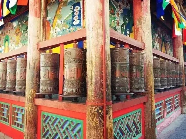 佛堂周围的转经筒上的六字箴言已经被磨得都平了