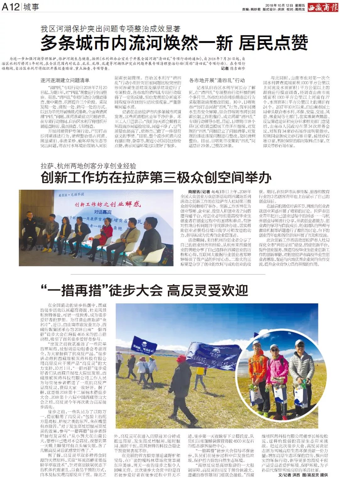 “出发之前我就准备了一些简单的常用药,没想到活动组委会考虑周全,为大家提供了高反产品。”10月1日,“一措再措”徒步爱好者们从西藏日报社大院出发前,西藏维桢医药科技有限公司工作人员为每位徒步者赠送了一瓶抗高反产品高反灵,获得大家一致好评。据了解,这是继2018第十二届纳木措徒步大会、2018第十六届中国西藏登山大会之后,高反灵今年再次助力高原徒步活动。