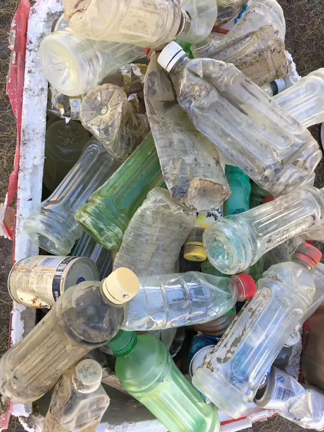 然而,看看脚下,土层上,草丛中,泥沼里,沿途可见游客们扔弃的垃圾物。塑料瓶、饮料罐、啤酒瓶、废弃衣物,有的长时间滞留而发黑,特别刺眼。
