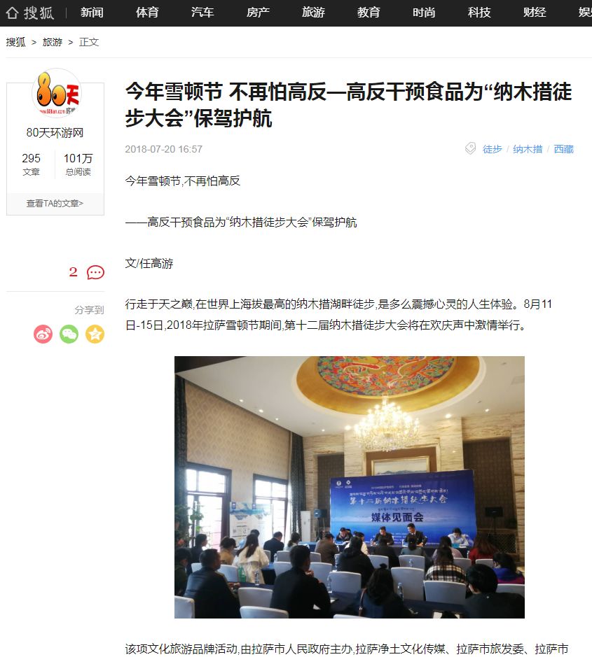 在“第十二届纳木措徒步大会媒体见面会”召开后,腾讯网、今日头条、搜狐网、中国健康观察网等多家相关媒体进行了报道。